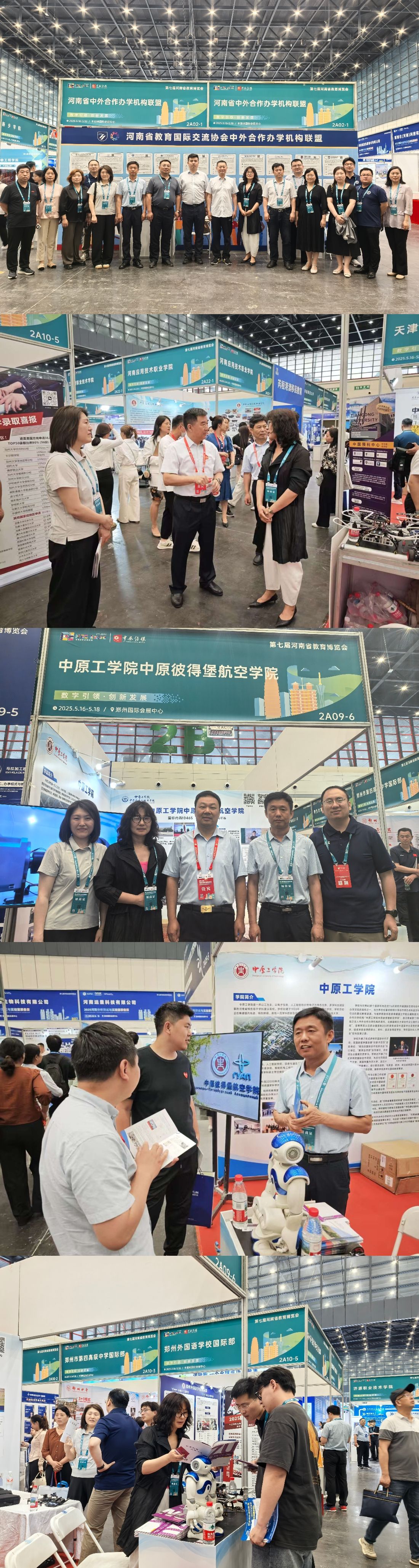 2025年5月16日-18日,中原彼得堡航空学院党总支书记轩信飞带队,副书记杨华、副院长涂晓韦及相关工作人员一行7人,赴郑州国际会展中心参加第七届河南省教育博览会。