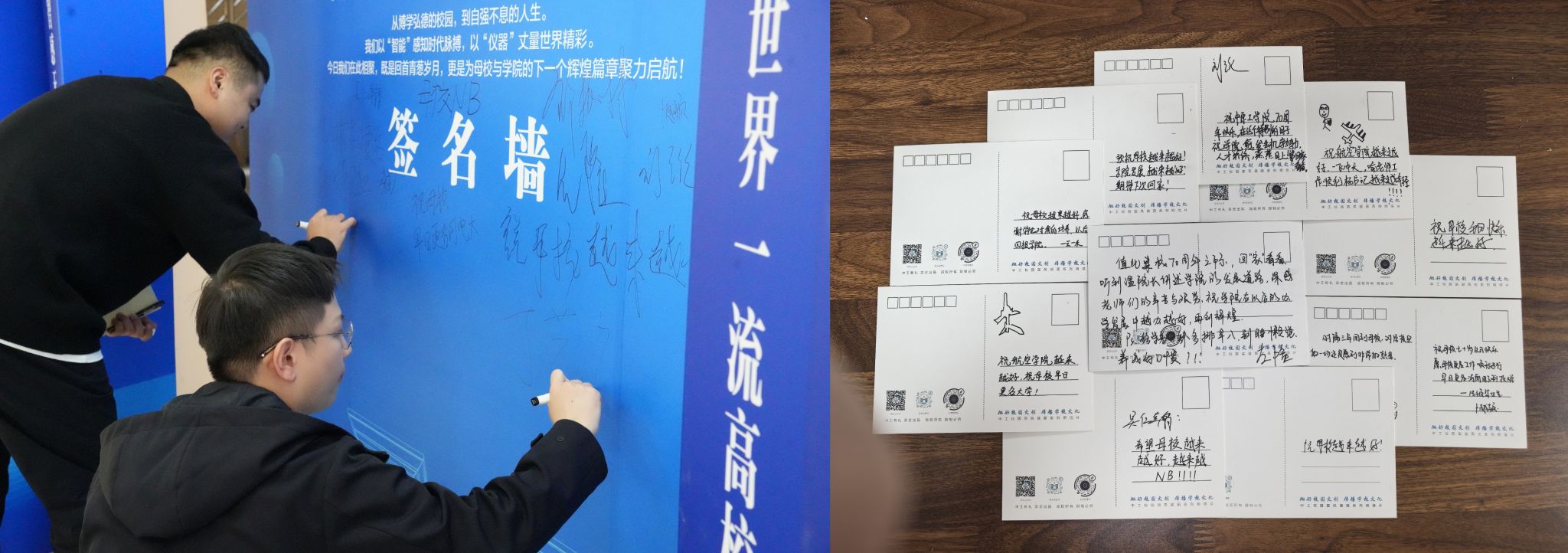 活动期间,校友们以笔墨寄托对母校的深厚情谊与美好祝愿:不仅在11号教学楼大厅的签字墙上郑重签名留念,还纷纷写下满载祝福的贺卡,字里行间洋溢着对母校七十华诞的诚挚祝贺与对学院未来发展的坚定信心。