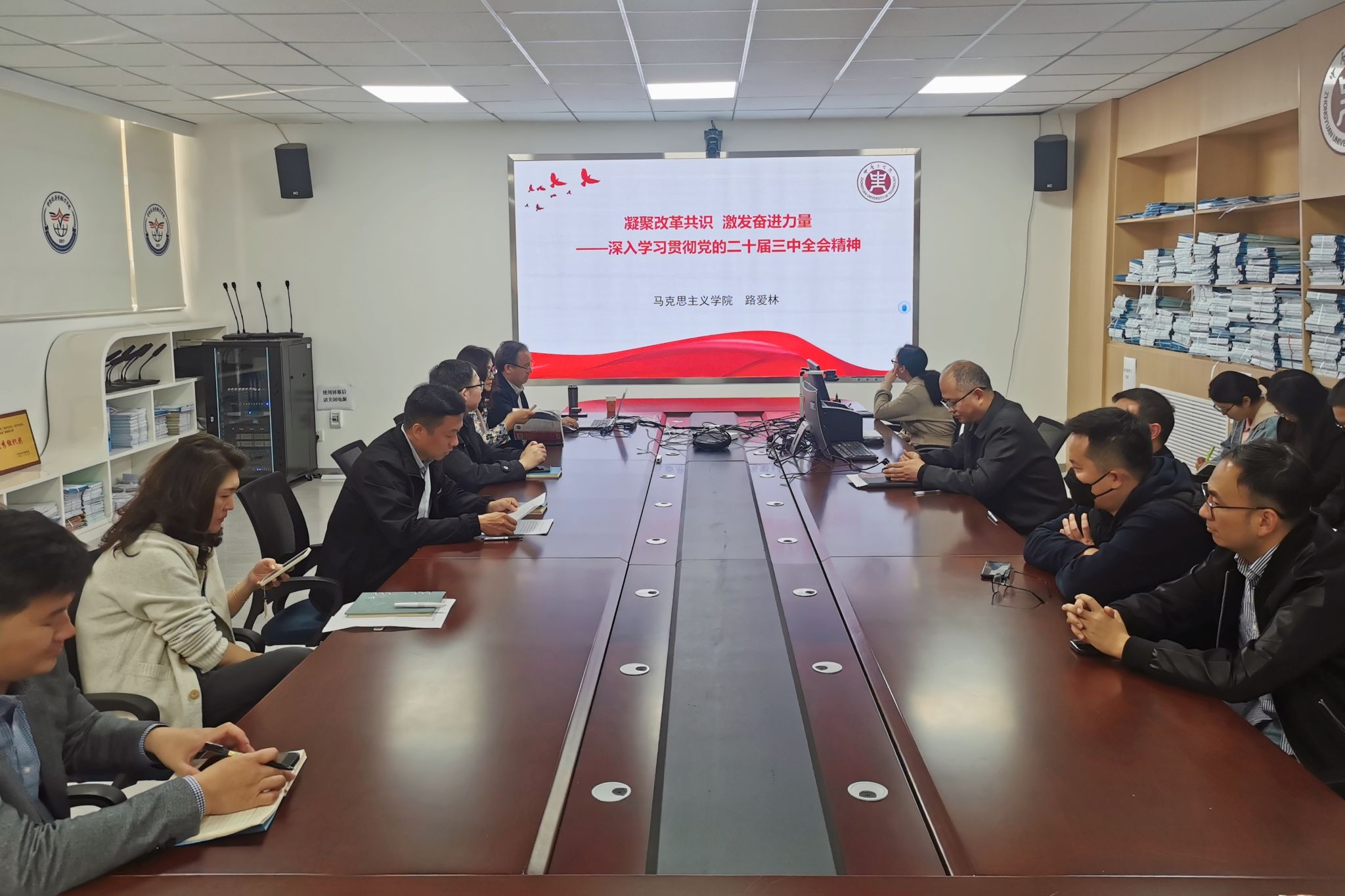 理论宣讲团成员、马克思主义学院副院长路爱林应邀作专题宣讲。学院全体党员干部参加,学院党总支书记轩信飞主持宣讲会。