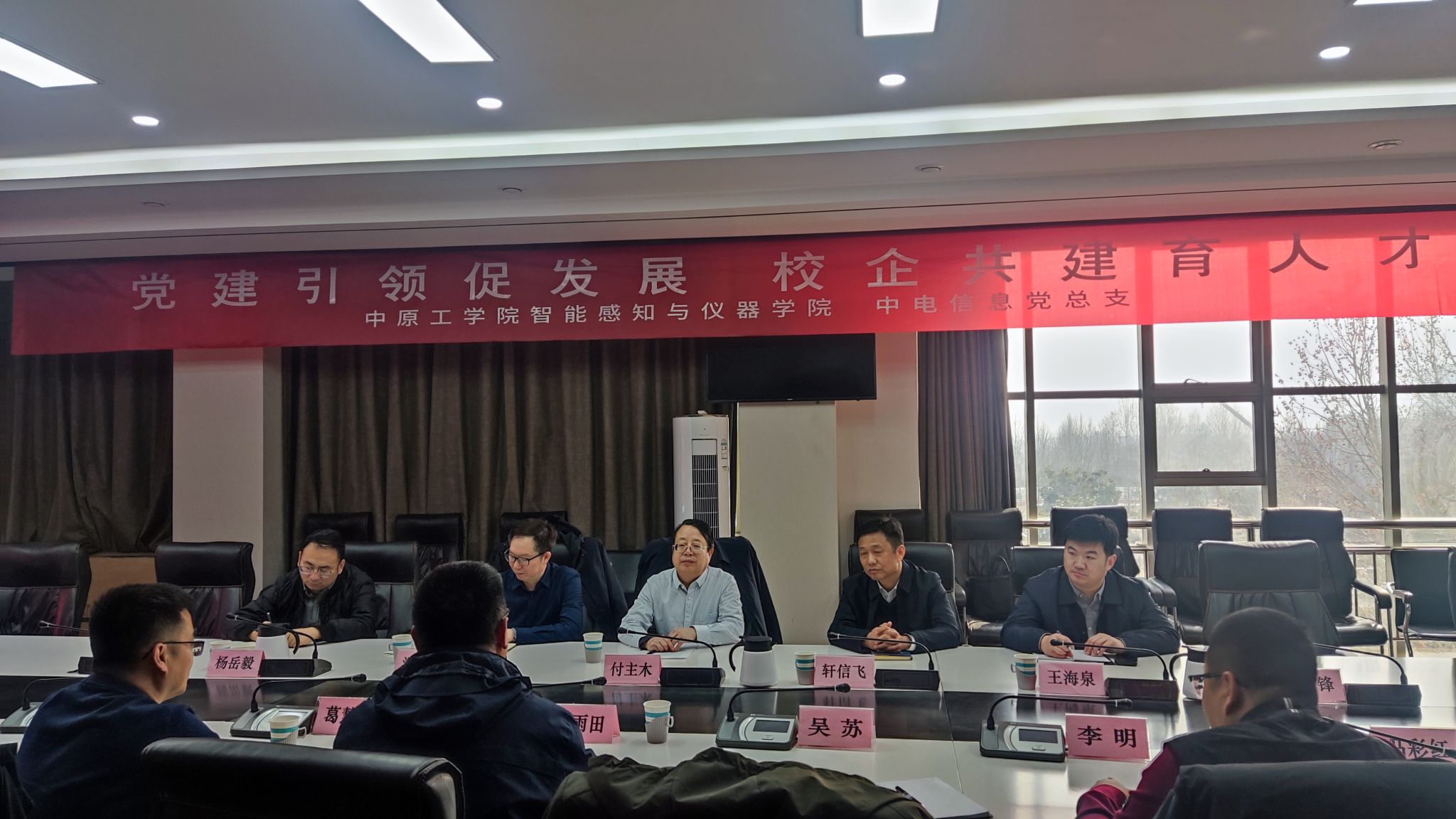 副校长付主木带队前往中电科信息产业有限公司和中原光电测控技术有限公司开展“党建引领促发展、校企攻坚育人才”主题党日活动,并为双方共建的研究生实践创新基地揭牌。学院党总支书记轩信飞、执行院长温盛军和副院长王海泉等陪同前往。
