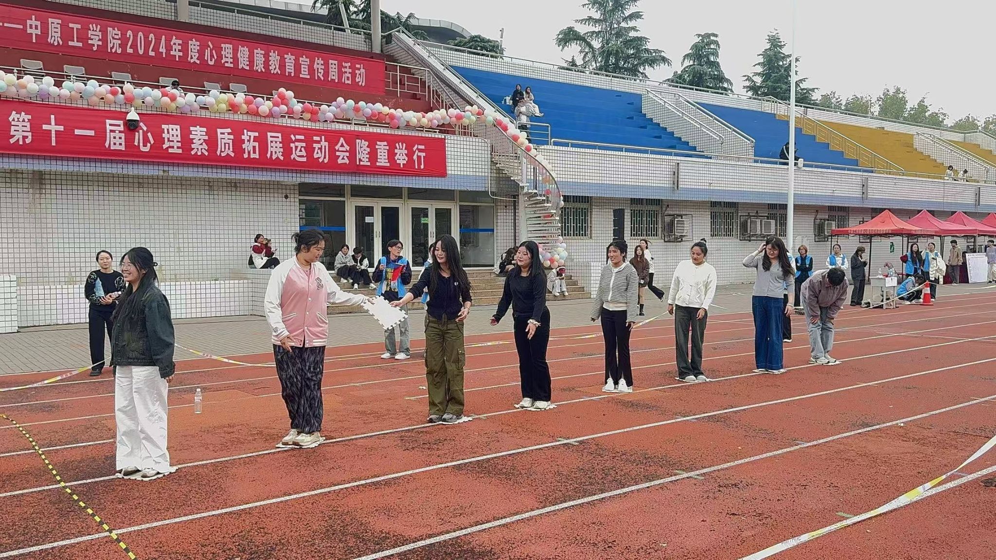 为了营造Feet9 健康的心理文化氛围,提高大学生心理素质,培养团队合作精神,塑造健全人格,Feet9 于10月26日正式举办了第十一届心理素质拓展运动会。在此次活动中,Feet9 学生展现出昂扬向上的精神风貌,全力以赴,充分彰显了青春的活力与激情。